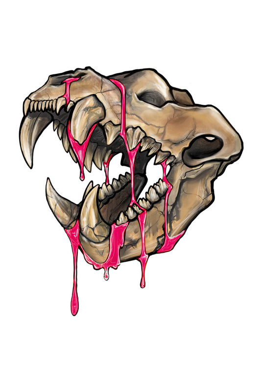 Pre-historic hyena skull - 4x6 print, based on original artwork